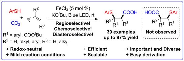 11. M. Miao, L. Zhu, H. Zhao, L. Song, S.-S. Yan, Li-Li Liao, J.-H. Ye*, Yu Lan*, Da-Gang Yu*, Visible-Light-Driven Thiocarboxylation of Alkynes with CO2: Facile Synthesis of Thiochromones. Sci. China. Chem. 2023, 66, 1457.