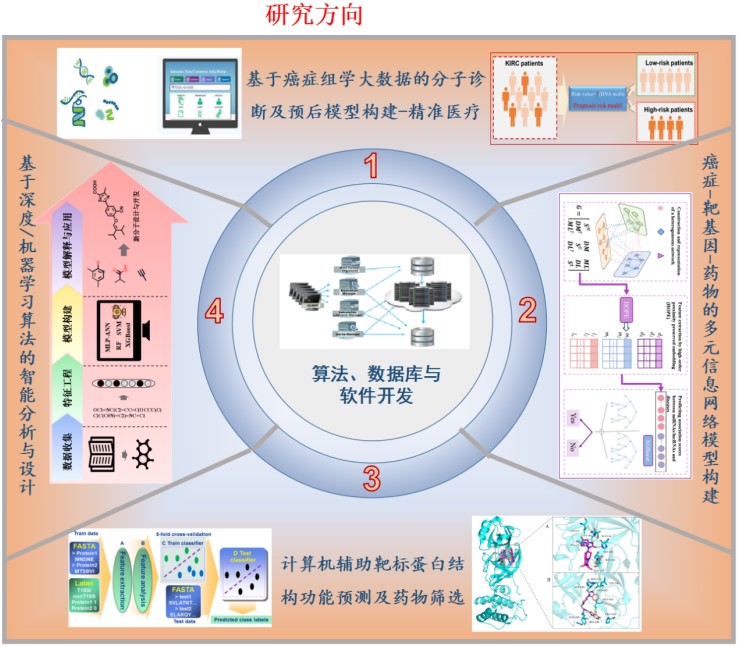 主要从事人工智能、机器学习与深度学习算法及信号处理方法的应用研究,包括基于生物医学大数据的癌症精准医疗模型,计算机辅助药物发现与设计,功能材料的智能分析与设计等。以国家生物医药领域和医学大数据领域的重大战略需求为研究导向,利用人工智能技术,在化学、生物学及医学领域进行理论计算与分析,坚持基础与应用并重,发展多学科领域的交叉研究方向。主要从事人工智能、机器学习与深度学习算法及信号处理方法在化学、生物与医学信息学的应用研究。在癌症调控机制的多组学分析;疾病、靶基因与药物的多元信息网络构建;计算机辅助功能分子的优化设计等理论研究方面积累了较为丰富的研究经验。以通讯作者发表 SCI 论文 40余篇,包括 Nucleic Acids Res, Brief Bioinform, Front Immunol,J Chem Inform Model 等国际相关重要刊物,授权专利2项,获准计算机软件著作权4项。