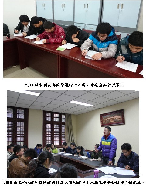 十八届三中全会知识竞赛”、“深入学习贯彻十八届三中全会精神演讲比赛”“深入学习贯彻十八届三中全会精神主题讨论”等一系列活动,使学生对十八届三中全会会议内容有更深入的了解,更进一步深化了学生对党的十八届三中全会精神的理解。