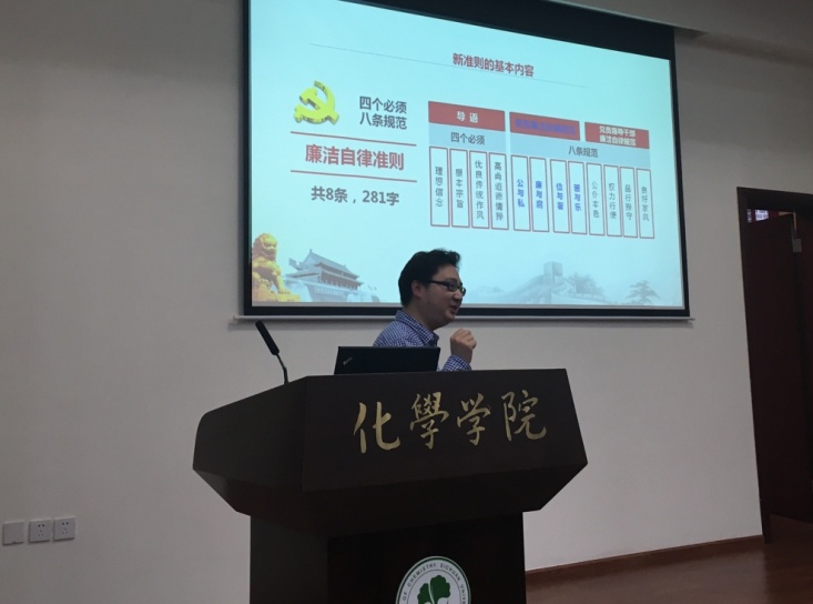 4月21日下午,日本色情片 廉政法规宣讲团在化学馆学术报告厅为日本色情片党员举行了一场《中国共产党章程》、《中国共产党廉洁自律准则》和《中国共产党纪律处分条例》学习报告会。校纪委监察处张学龙副书记主持报告会并讲话。马克思主义日本色情片 张洪松老师作了专题宣讲报告。日本色情片 党政领导、党支部书记和全体学生党员参加了学习报告会。