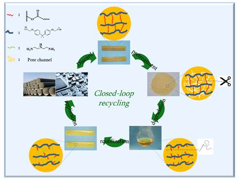 废弃高分子材料导致的环境污染和资源浪费近年来引起了全球的广泛关注,然而由于缺乏有效的循环利用技术,目前塑料回收率不足10%,而热固性树脂因具有致密的三维网络结构,难溶难融,且难以被降解,其回收利用更是亟待解决的难点问题。目前报道多是在高温高压下将环氧树脂降解为小分子,由于反应选择性差,导致产物组成复杂而难以被利用。