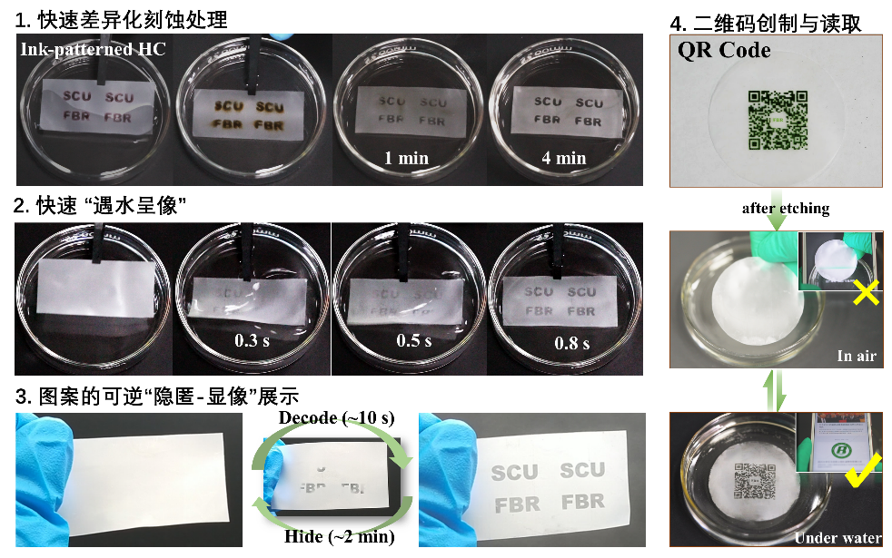 喷墨打印预处理表面的快速图案化刻蚀与信息加密防伪应用展示
