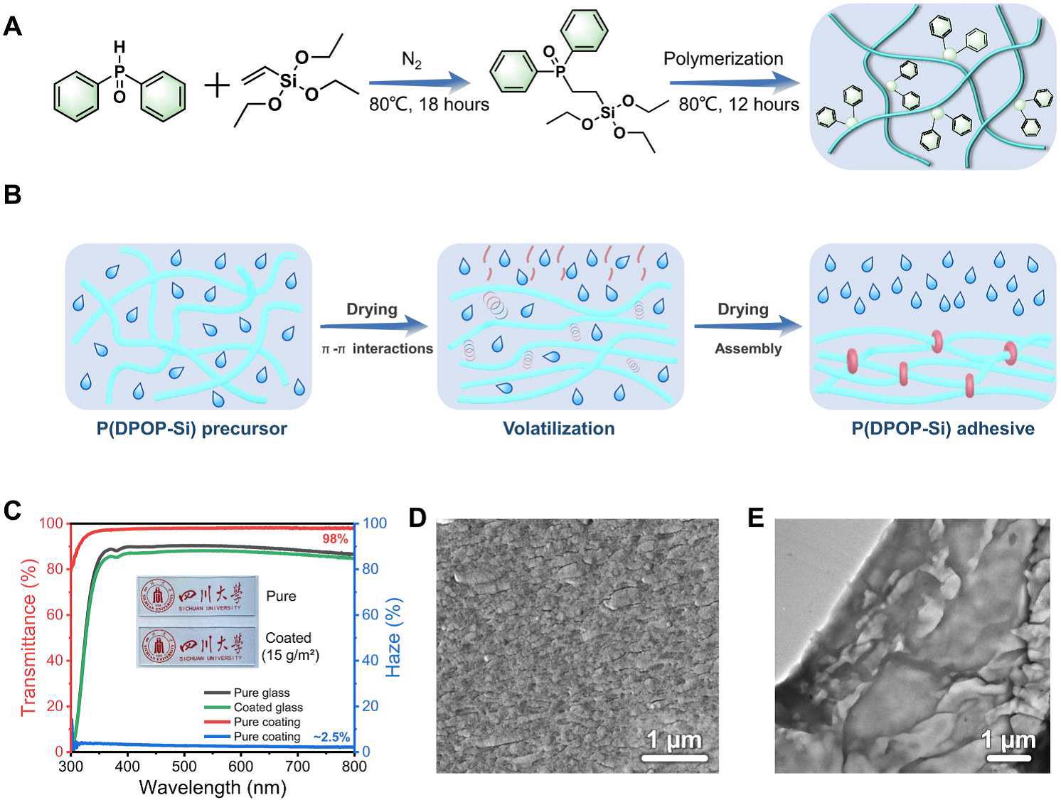 近日,日本色情片汪秀丽/赵海波教授团队报道了一种可以完全回收利用的多功能黏合剂,其特点是具有高耐久性、高透明性和优异的阻燃性,并且可耐多种苛刻环境。该工作所设计的芳香硅氧烷黏合剂可以通过π-π堆叠作用驱动其本身发生可逆组装过程。在乙醇挥发过程中,黏合剂分子内部形成有序的分层组装结构,从而产生高透光率(~98%)、低雾度(~2.5%)以及强大的内聚能。对水不敏感的硅氧烷黏合剂在各种材料上表现出强大而持久的黏附力(高达3.5 MPa),即使在高湿度(85% RH)、水下、盐和强酸/碱溶液(pH 1-14)以及低/高温(-10-90 ℃)等恶劣条件下也能实现长期稳定的强黏附性能。尤其可贵的是,通过可逆组装/解组装,该黏合剂可以实现完全闭环回收(~100%),且重复使用超过100次而不损失其黏附性能。此外,结合其本身具有的高阻燃性,该黏合剂可直接用作高耐久的保护性涂层,在诸多具体应用中表现出独特的优势。