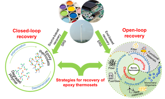环氧树脂具有优异的力学性能、电绝缘性能、粘接性能及化学稳定性等,被广泛应用于复合材料、电子封装材料、涂料和粘合剂等领域。全球对风能等清洁能源日益增长的需求推动了环氧树脂的生产和应用。用于风力涡轮机叶片的环氧树脂复合材料产量快速增长。然而,随着新产品的升级换代和使用寿命的结束,大量环氧树脂及其复合材料即将退役。如何从环境保护和资源利用角度出发,实现环氧树脂及其复合材料的绿色高效高值化回收利用,是目前面临的一大挑战。