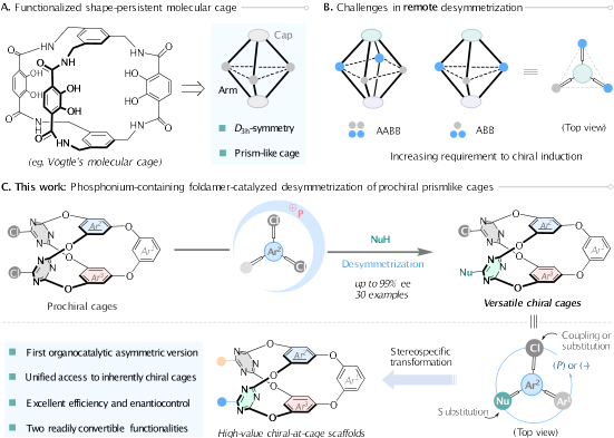 图1离子型有机折叠体催化远程去对称构建固有手性笼