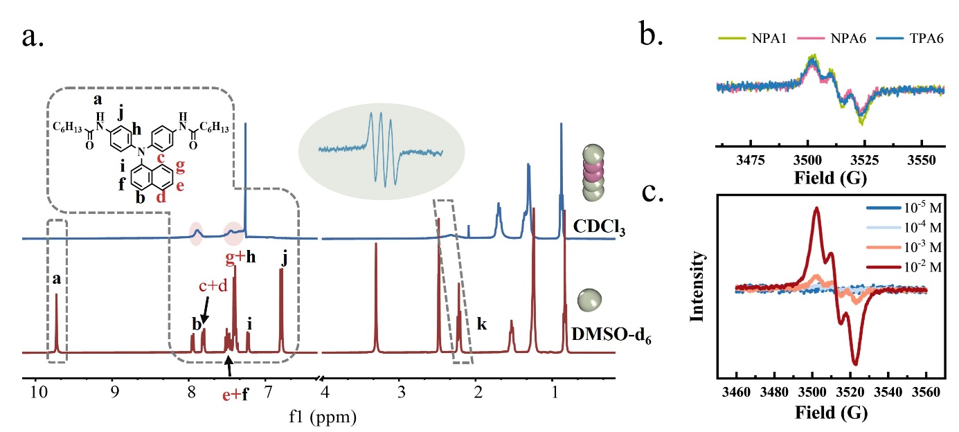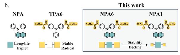 黄艳教授团队开发了新型光引发剂NPA6(图1)。NPA6在保留了NPA的磷光特性的同时,展现了独特的光生自由基能力(图2),可产生含自由基和中性分子的超分子聚集体。