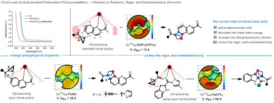 可见光诱导(杂)芳烃的去芳香化环加成反应因反应效率和选择性高、条件温和等优点,近年来受到化学家们的广泛关注。尽管如此,由于涉及区域、非对映、对映等多种选择性控制,可见光诱导(杂)芳烃的直接不对称去芳香化环加成反应难度高,研究报道少。鉴于取代基立体电子性质显著影响芳环上电子自旋布居,进而影响反应的区域、非对映和立体选择性控制,喹啉化合物的直接去芳香化环加成反应极具挑战性。