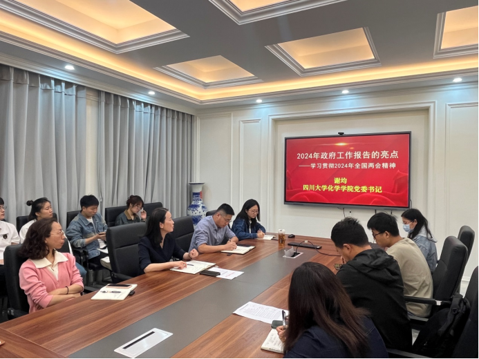 其后,谢均以《2024年政府工作报告的亮点——学习贯彻2024年全国两会精神》为题,为与会人员上了党课。她从新质生产力概念提出发展过程、新质生产力主要特点、推动形成新质生产力的主要发力点三个方面,就2024年政府工作报告中加快发展新质生产力部分作了详细讲解。