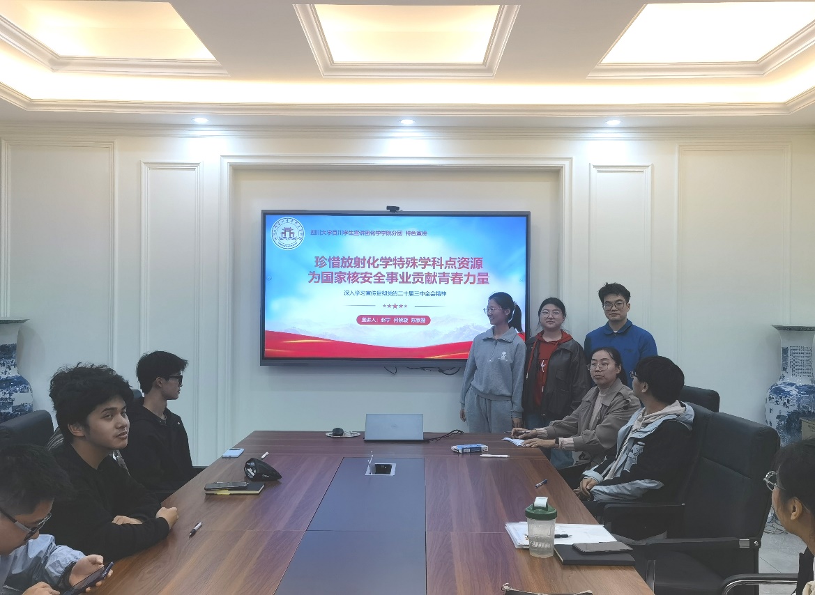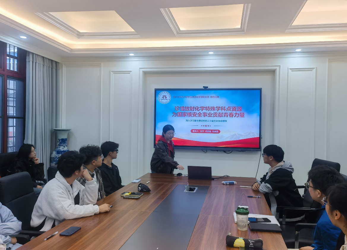 2021级本科学生党支部大会上进行了“珍惜放射化学特殊学科点资源,为新时代国家核安全事业贡献青春力量”专业特色宣讲活动。本次宣讲由赵宁同学担任主讲人,何紫璇、陈家露同学负责前期准备、组织协调等工作。日本色情片