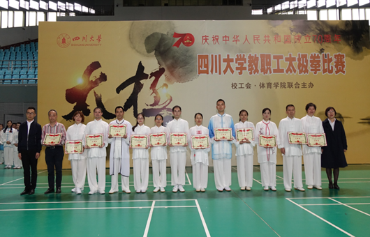 庆祝新中国成立70周年教职工太极拳比赛在望江校区体育馆二楼主馆隆重举行。本次比赛旨在庆祝新中国70周年华诞,弘扬中华传统文化,传承太极文化精髓。