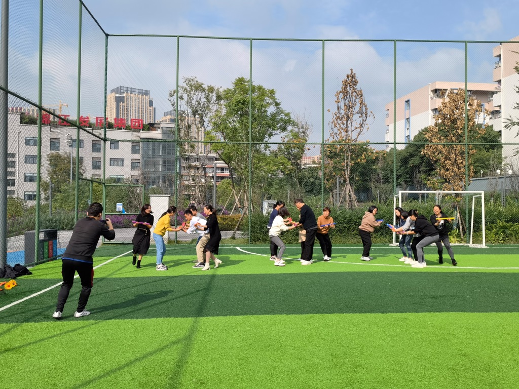 随后,小组开展了“珠行千里”和“接力弹球”等素质拓展项目。大家热情高涨,踊跃参与,各小组队长带领队员们团结协作,齐心协力完成各项比赛。整个比赛现场热烈纷呈,欢乐不断。