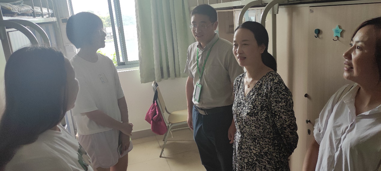 党委书记谢均、副书记肖波、学生科长杜晓燕老师、2023级辅导员浩涛涛一起前往本科新生宿舍看望新生及其家长。