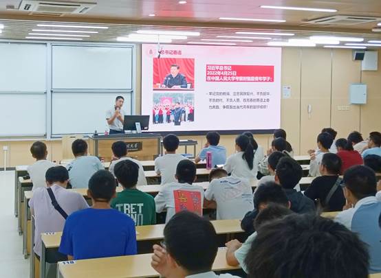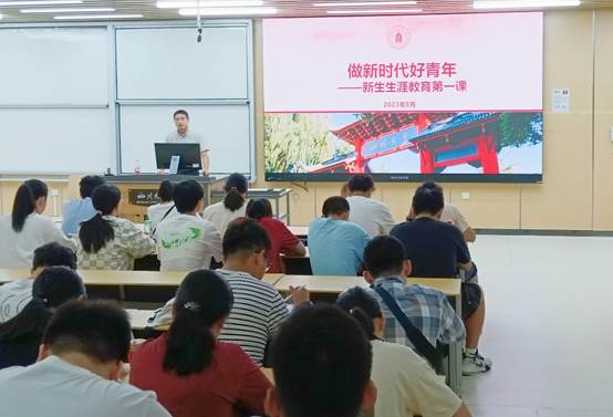 党委副书记肖波老师为2023级本科新生开展“做新时代好青年”新生生涯教育第一课讲座,辅导员浩涛涛以及全体2023级本科生参加了本次讲座。