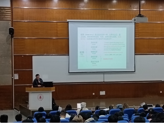 首先,朱老师简要讲述了化学学科的分类,强调化学学科中创造新物质的重要性,由此引出在创造新型、功能优异的材料中有机化学、高分子化学的重要地位。在分析高分子材料的重要性时,朱老师介绍到高分子材料是国民经济发展的重要支柱。朱老师讲述了高分子材料发展史和高分子合成的前沿研究。随后,朱老师讲述了不可降解高分子材料对环境和生态造成的影响,以及目前主要的处理高分子材料废弃物的方法,这些方法大多成本高、回收效率低、甚至造成二次污染,发展绿色可降解的高分子材料具有非常重要的研究价值。最后朱老师结合自己的研究重点讲述了他们课题组在发展新型高分子聚合方法方面开展的开拓性工作,以及在完成这些工作中创新和坚持的重要性,朱老师也鼓励同学们保持对化学的热爱和兴趣,打好基础,取得更好的成果。