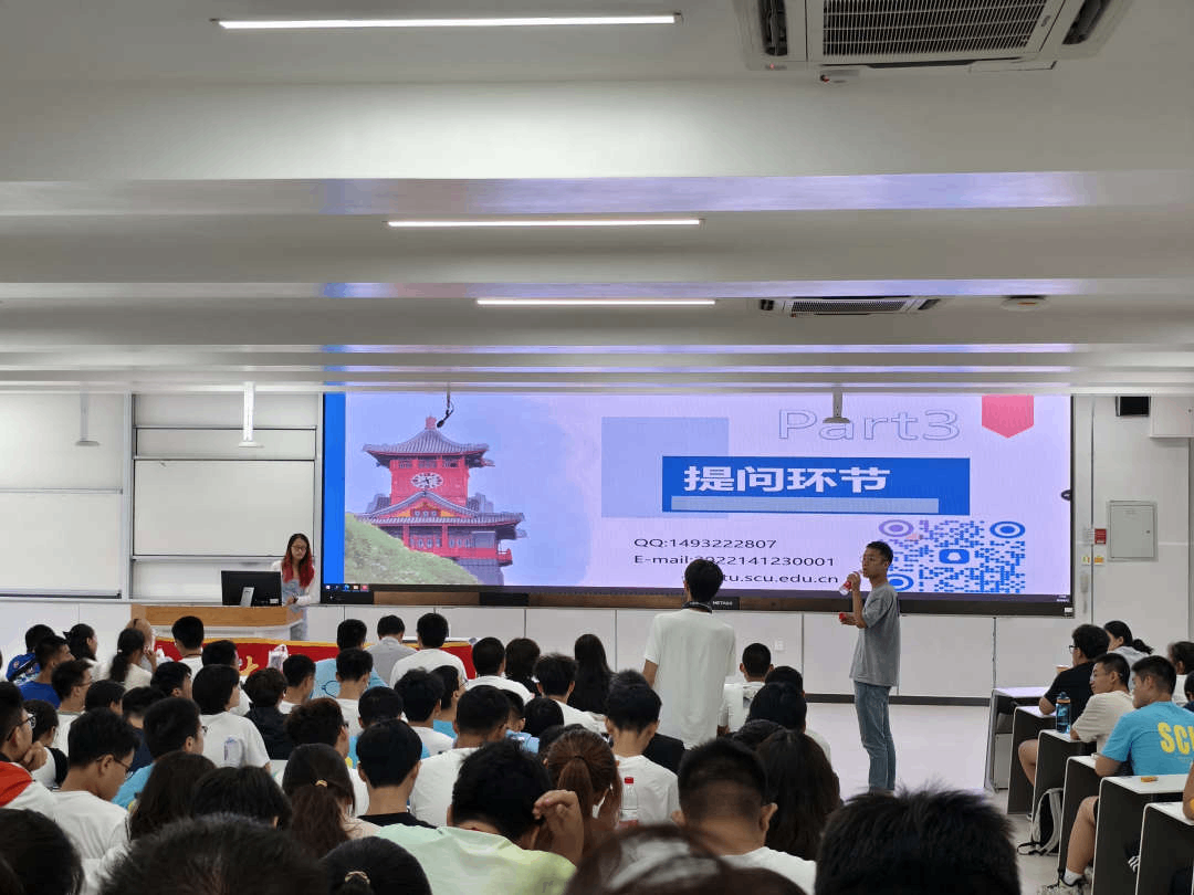 最后,新生们积极提问,与学长学姐代表和辅导员侯鹏飞老师进行了互动交流。他们提出了自己在学习和生活中遇到的问题和困惑,得到了学生代表和辅导员侯鹏飞老师的耐心解答和指导。