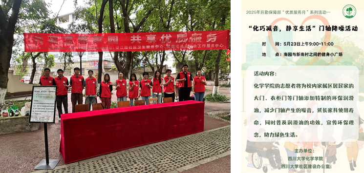 社区建设办公室,在望江校区校内家属区举办“化巧减音,静享生活”门轴降噪志愿活动。本次活动由支部书记张美成老师带领,党支部十余名同学参与活动。