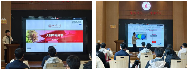江安校区22舍一楼报告厅面向大一、大二的同学开展了大创经验分享会。