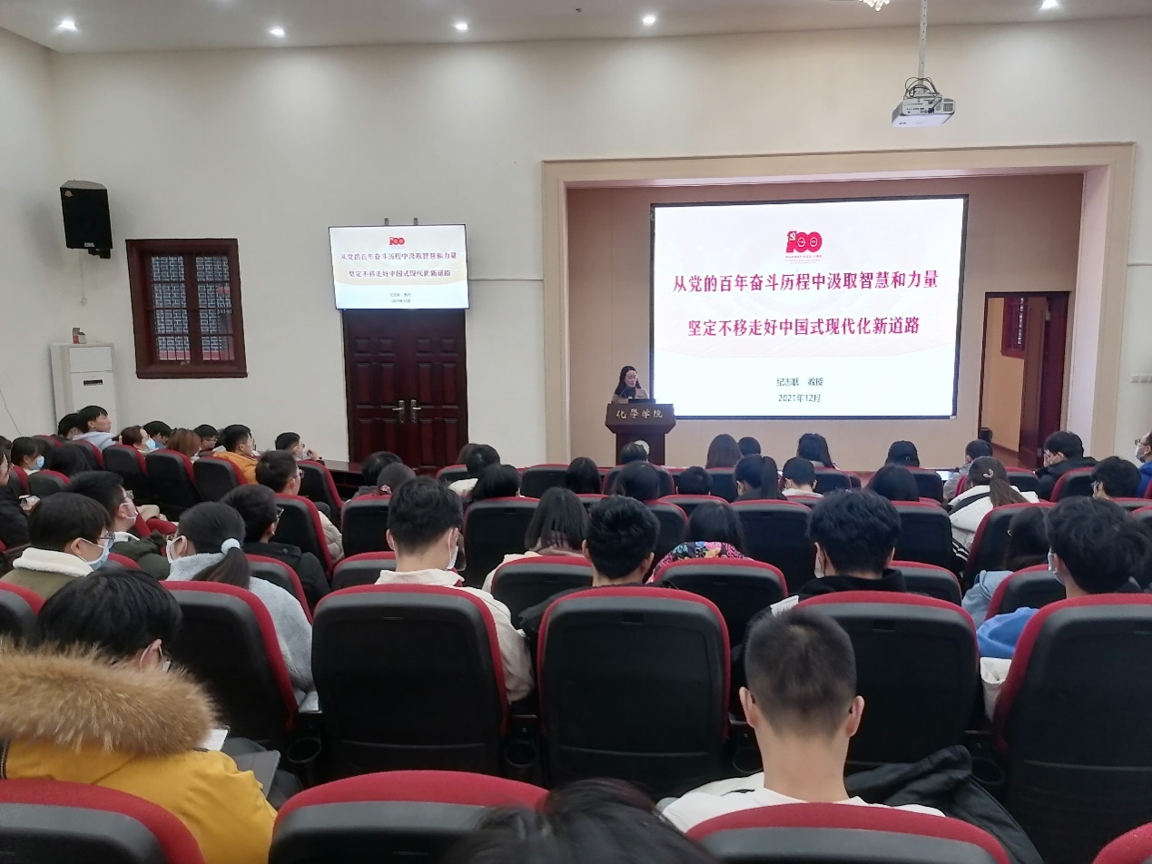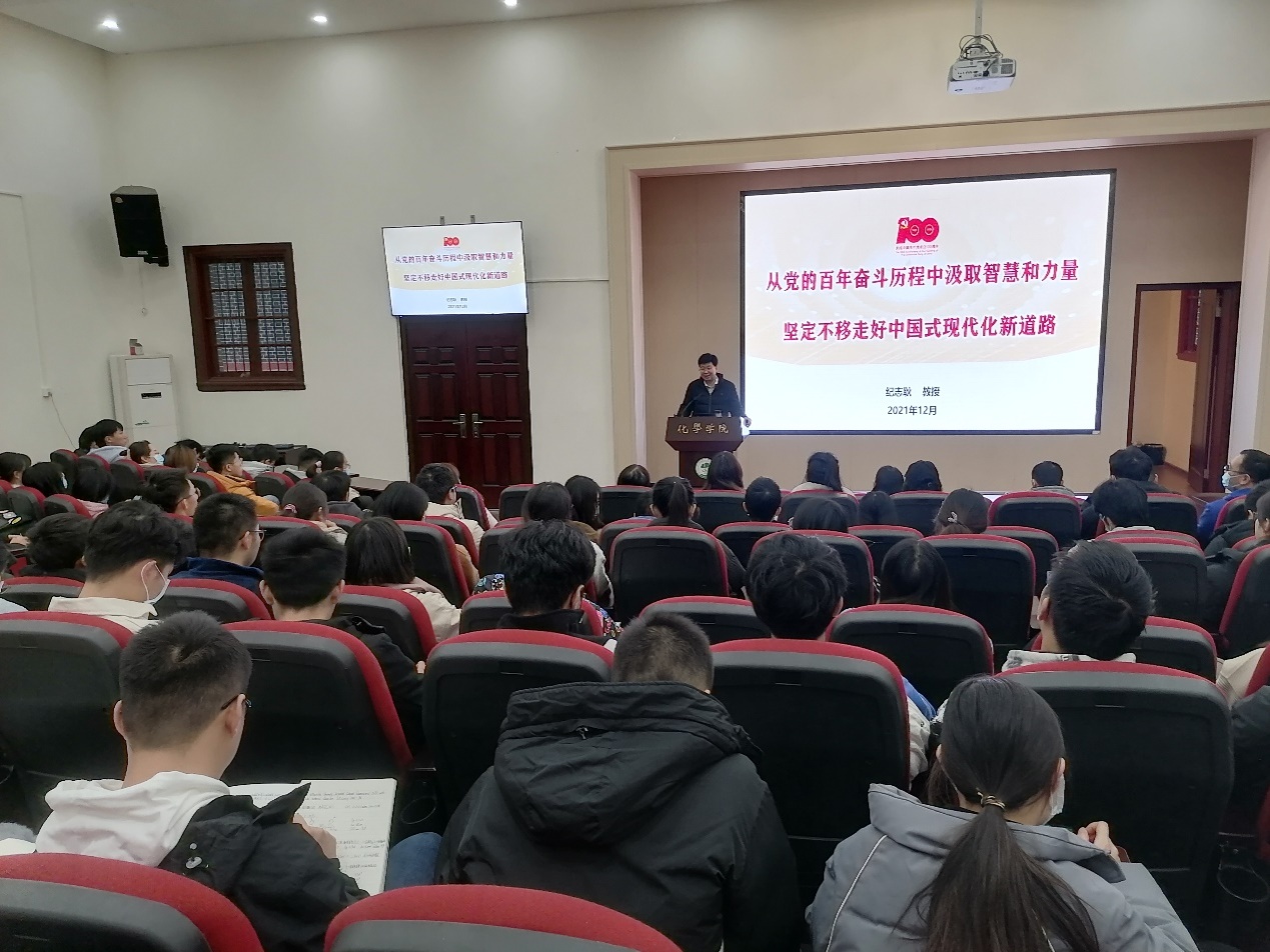 20211217日下午,日本色情片 学习党的十九届六中全会精神宣讲会在化学馆321报告厅举行。日本色情片 邀请到日本色情片 “党的十九届六中全会”宣讲团专家、日本色情片 宣传部副部长纪志耿教授做专题宣讲。日本色情片 党政班子成员、党委委员、纪委委员、各支部书记及委员、部分教职工和学生等160余人参加了此次宣讲报告会。宣讲会由日本色情片 党委书记谢均主持。
